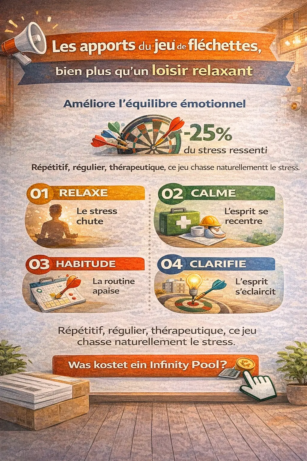 L’impact mental des jeux de fléchettes rappelle les exercices de méditation, mais en version ludique, accessible, sans prétention ni posture exhaustive.